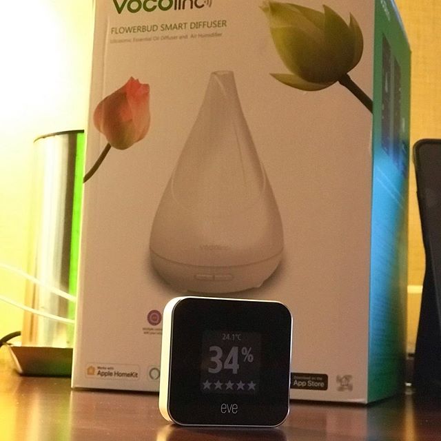 @meeteve tells me humidity is a little low. Good thing that my @vocolinc.official Flowerbud arrived today! It won’t connect to the hotel wifi but it’s small enough to fit in my bags and the nightlight looks great! #roadwarrior #hotelliving #travellife #smarthome #homeautomation #apple #applehomekit #homekit